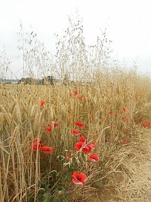 Wild Oat (Avena fatua) and Corn Poppy (Papaver rhoeas) in a wheat field