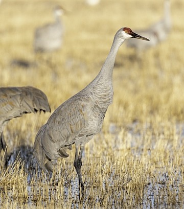 Sandhill crane standing in the tall grass