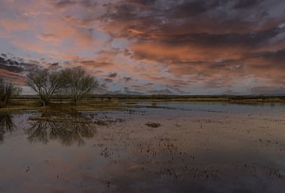 Sunset with beautiful color and clouds over a lake in New Mexico