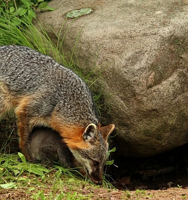 Gray fox and rock