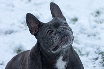 Blue French Bulldog Sitting Looking Upright
