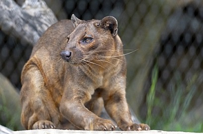 Fossa at the zoo after eating on the rock
