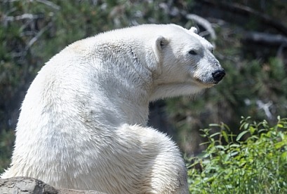 Polar bear at the zoo looking around