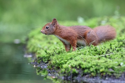 cute Eurasian red squirrel (sciurus vulgaris) in the forest