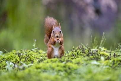 cute Eurasian red squirrel (sciurus vulgaris) in the forest