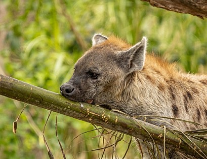Spotted HyenaSpotted Hyena carrying palm fran in mouth