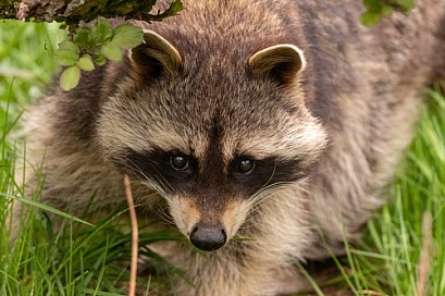 Raccoon Close Up Peeking Under Branch