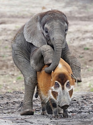 African elephant (Loxodonta) and red river hog (Potamochoerus porcus)