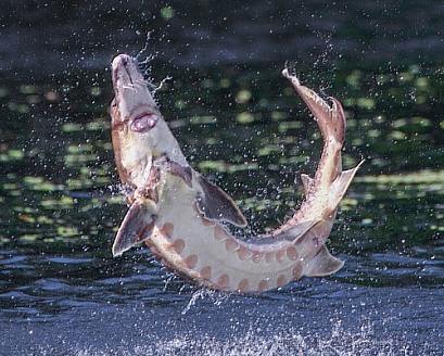 Wild Adult Gulf sturgeon - Acipenser oxyrinchus desotoi - jumping out of water