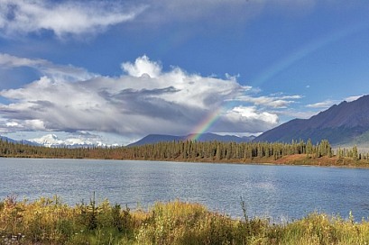 A Rainbow and Autumn Colors in the Wilderness of Denali Highway, Alaska