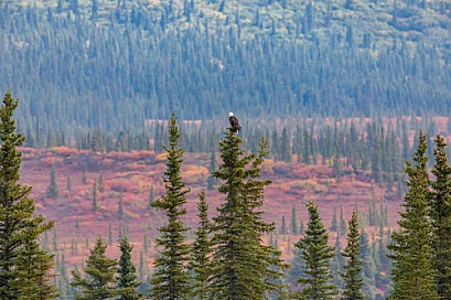 An Eagle Sits Amongst the Autumn Colors in the Wilderness of Denali Highway, Alaska