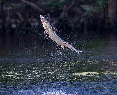 Wild Adult Gulf sturgeon - Acipenser oxyrinchus desotoi - jumping out of water
