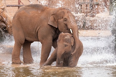 Young Asian Elephants Playing In Water