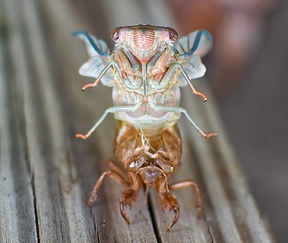 Cicada shed old shell or exoskeleton metamorph into adult stage