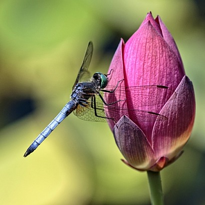Blue Dasher Dragonfly-Blue Dasher on Pink