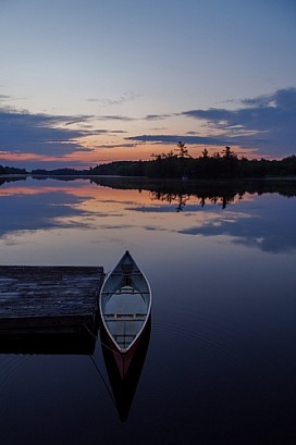 The red canoe at sunrise