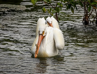 American White Pelican in water