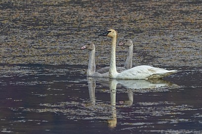 Trumpeter Swan Adult with Cygnets in Alaska