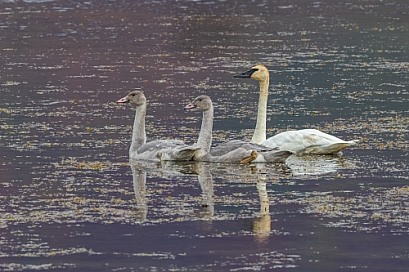 Trumpeter Swan Adult with Cygnets in Alaska