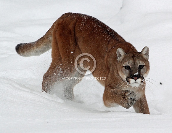 - Description: Young female cougar NOTE FROM WRP: Please note that the detail and sharpness of this image is not great when zoomed in to full resolution but we had to approve it due to the outstanding composition and movement.