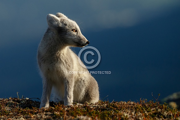 - Description: A arctic fox in morning light in a autumn coloured setting at Norway