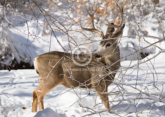 - Description: Mule deer in winter snow