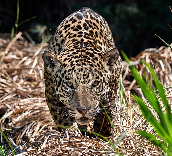 - Description: Brazilian Pantanal Jaguar stares at photographer. This jaguar is not in captivity.
