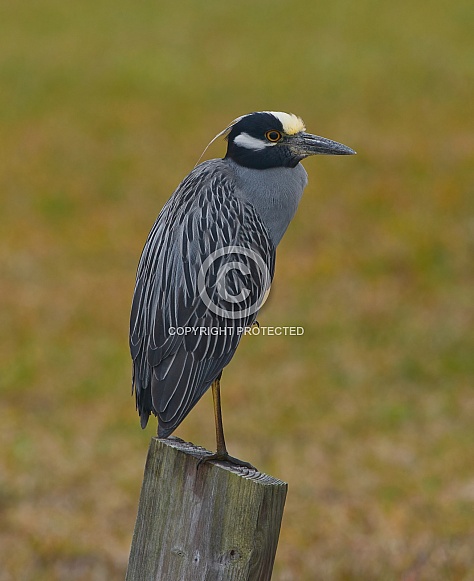 - Title: Yellow-crowned Night Heron (Nyctanassa violacea) perched on pylon